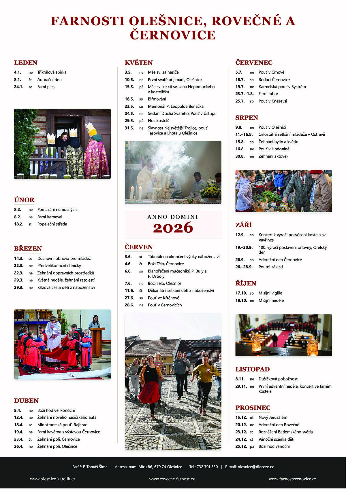 Farnost Černovice Vás srdečně zve na farní kavárnu a výstavu velkoformátových fotografií společenství Člověk a Víra. Farní kavárna se uskuteční 19. dubna 2026 ve 14.30 na faře v Černovicích....