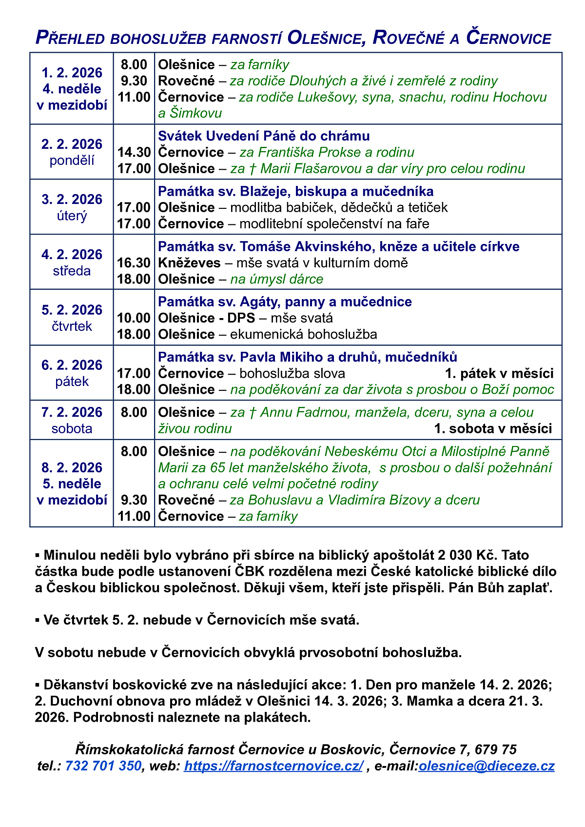 2. Bohoslužby od 8. do 15. 2. 2026