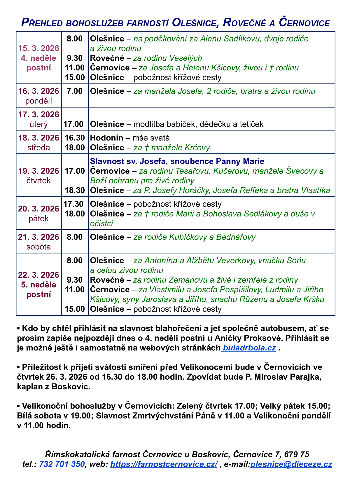 3. Bohoslužby od 29. 3. do 5. 4. 2026