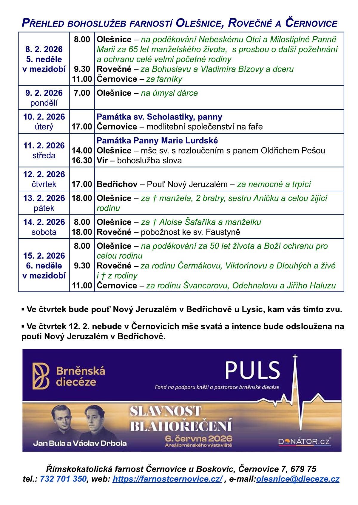 1. Bohoslužby od 15. do 22. 2. 2026