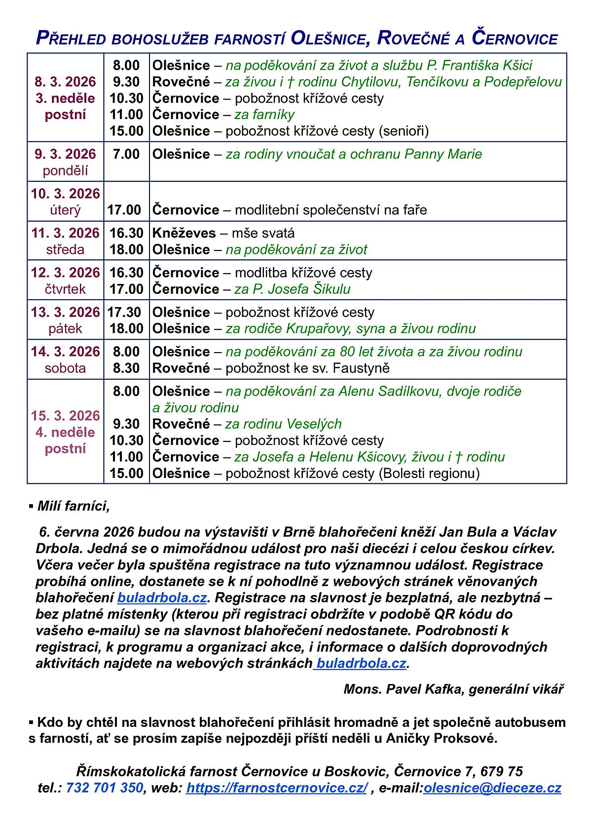 3. Bohoslužby od 29. 3. do 5. 4. 2026